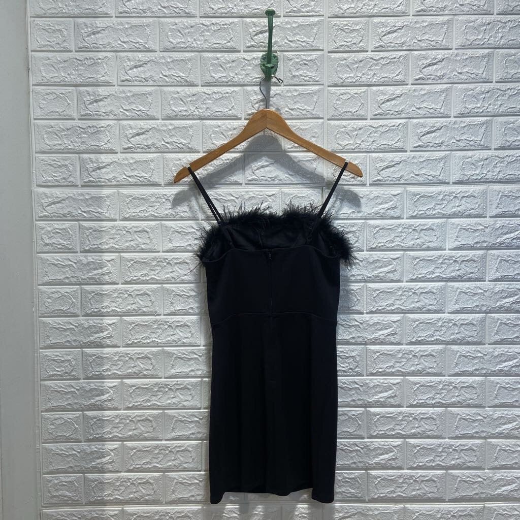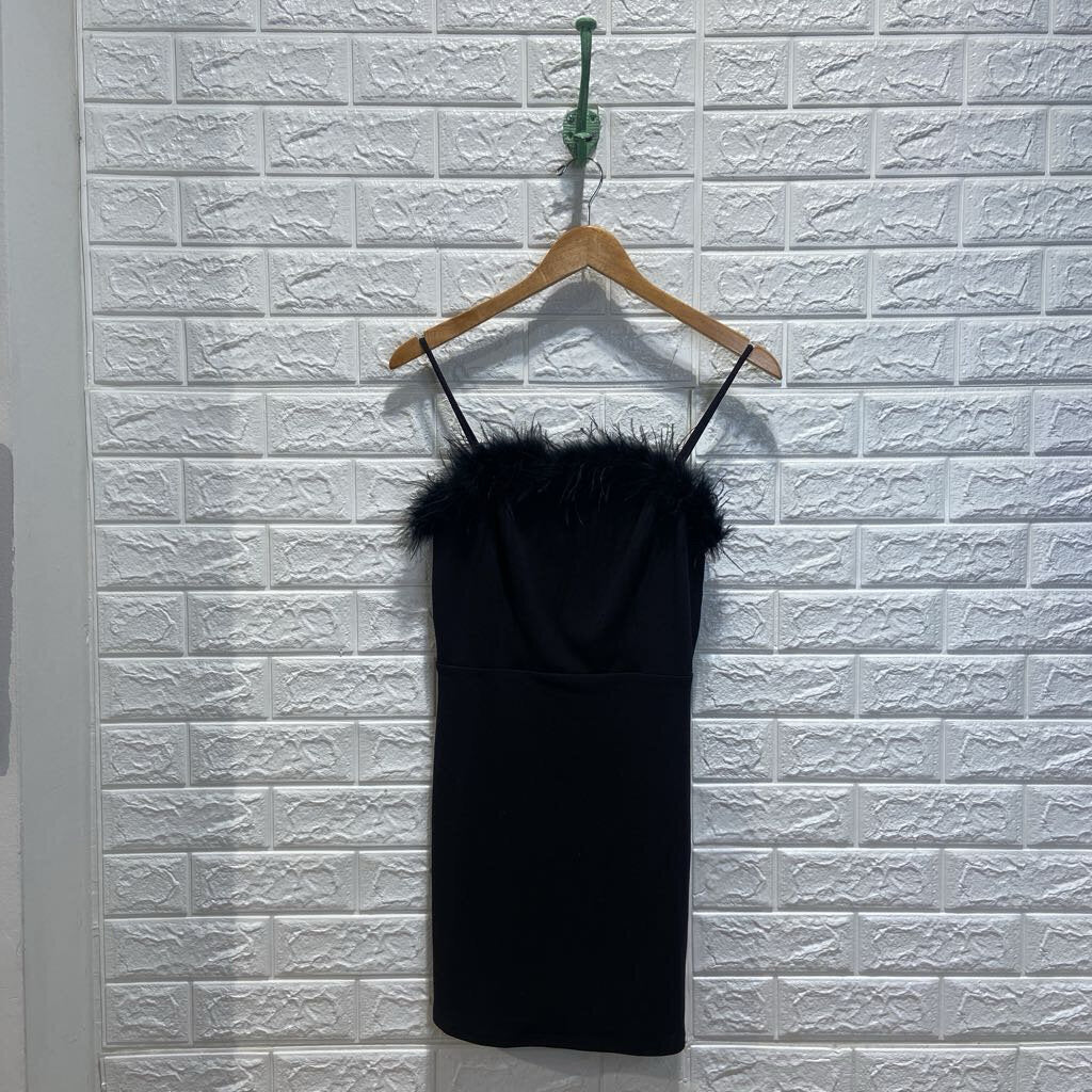 Feathery Trimmed Sleeveless Mini Dress