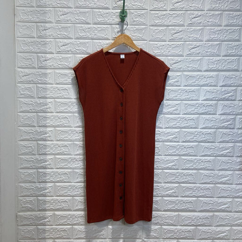 Ribbed Sleeveless Button Up Dress
