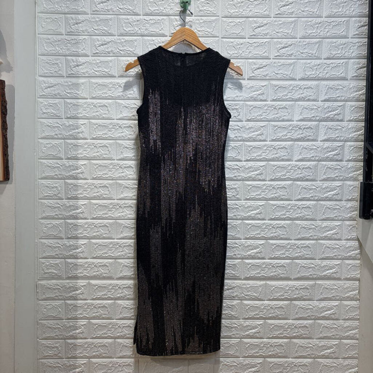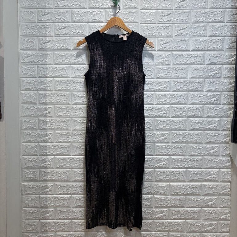 Shiny Textured Sleeveless Midi Dress w/ Slip