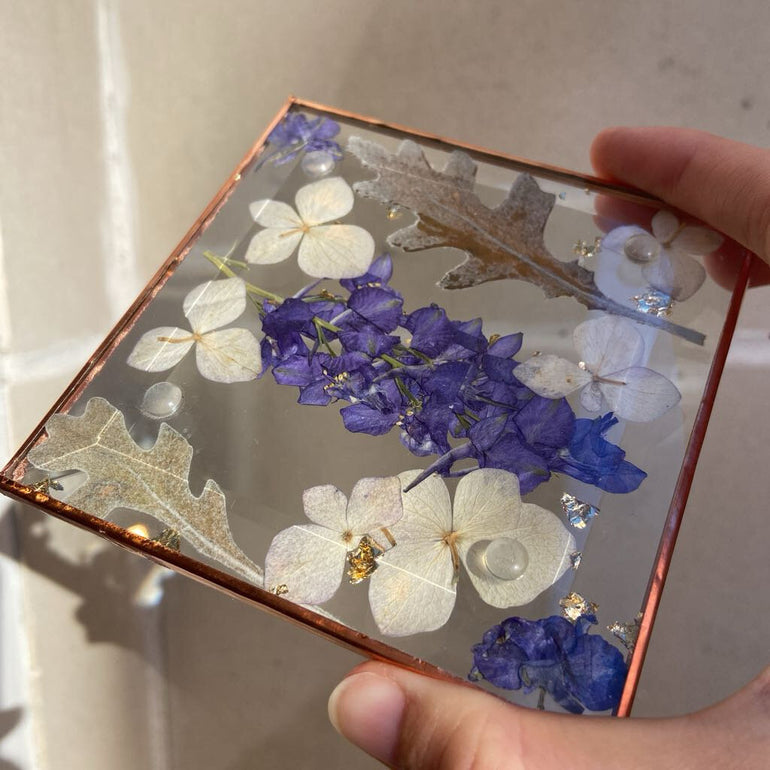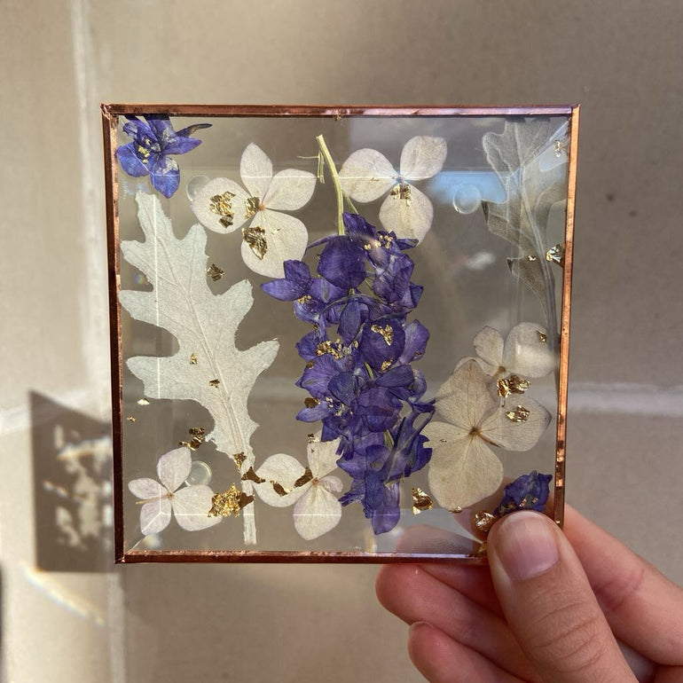 Pressed Flower Coaster: Dusty Miller/Larkspur/Gold