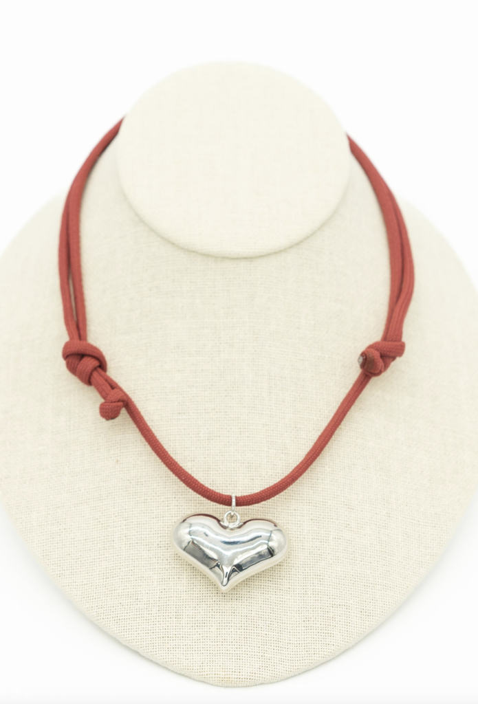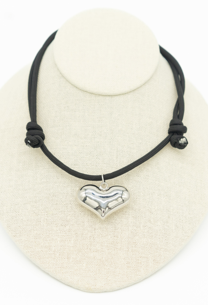 The Paracord Jumbo Puffy Heart Necklace: Silver