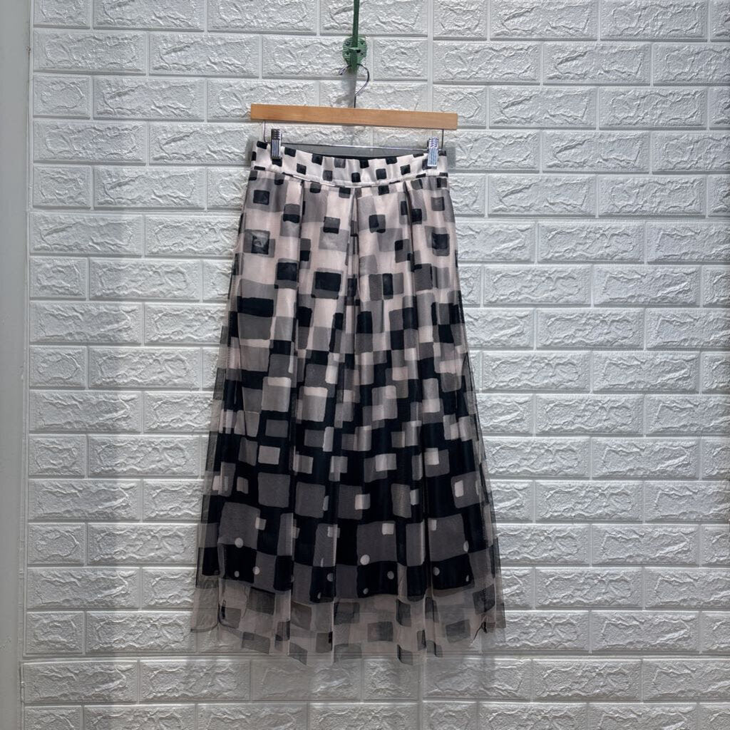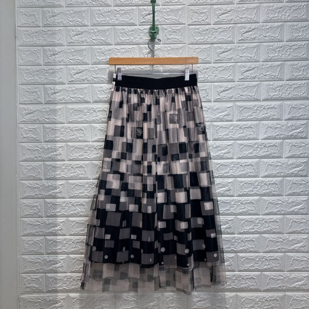 Square Patterned Mesh Layered Skirt