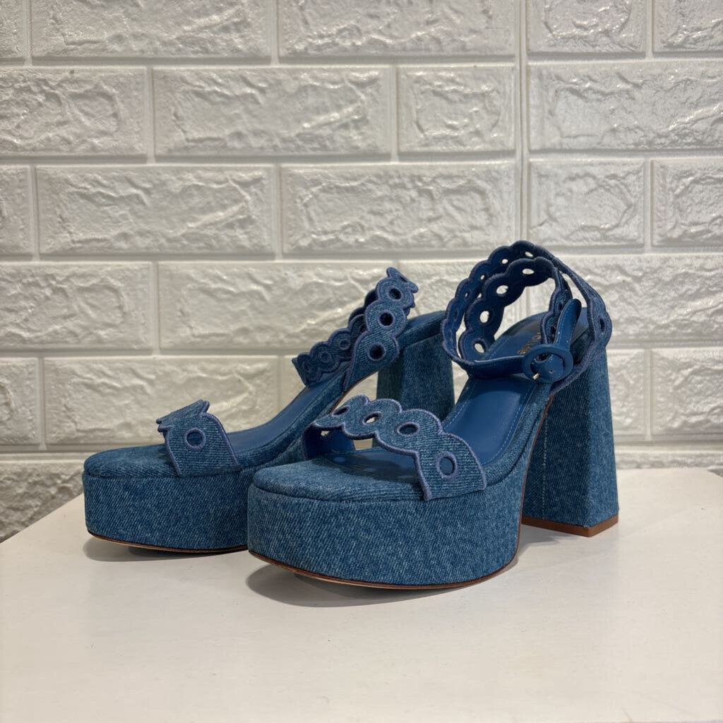 Denim Dolly Broderie Platform Sandals