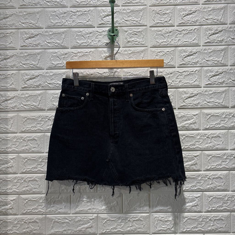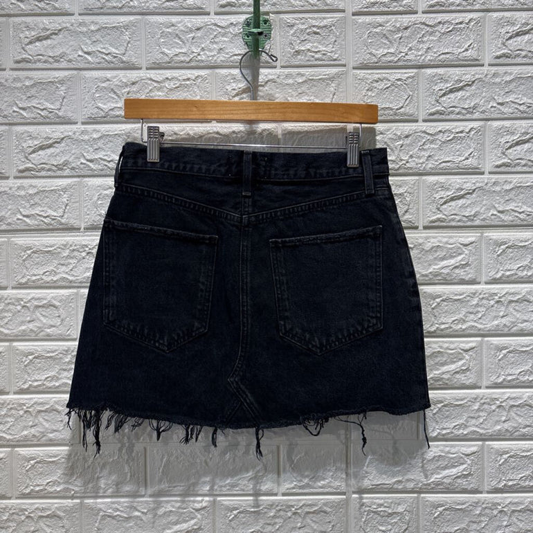 Button Fly Distressed Denim Skirt
