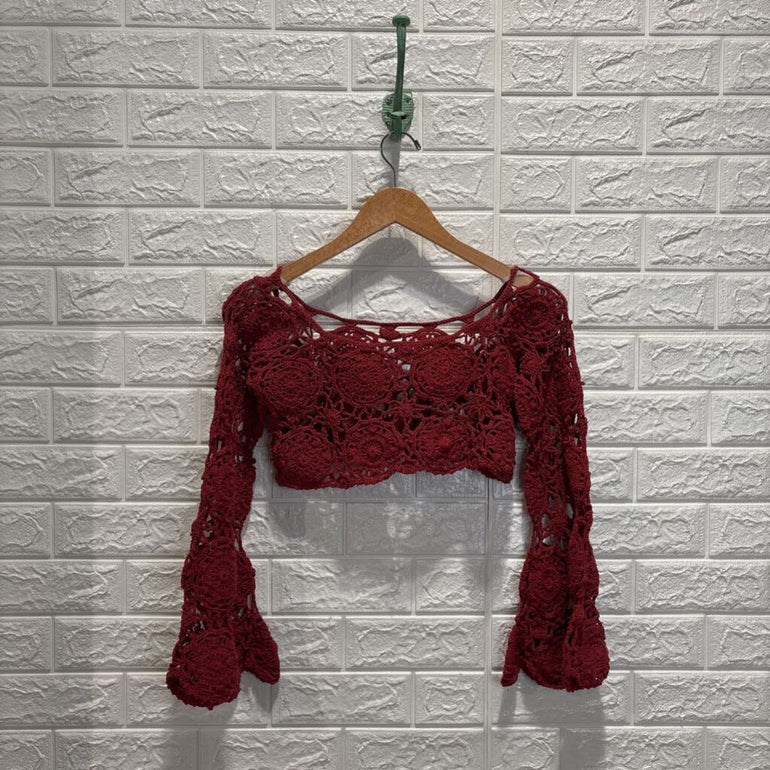 Cropped Crochet Flare Sleeve Top
