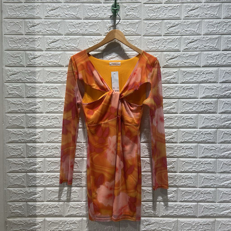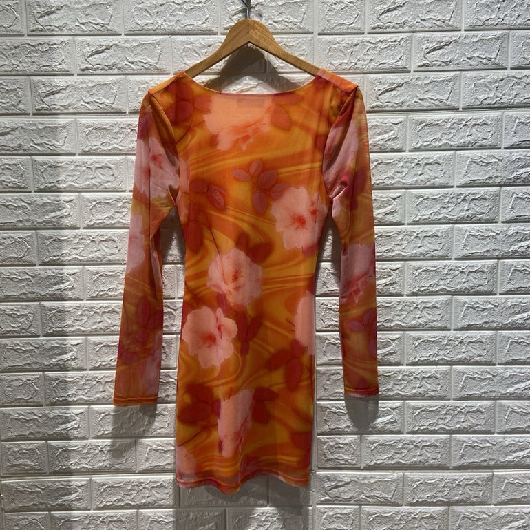 Floral Long Sleeve Mesh Cutout Dress NWT
