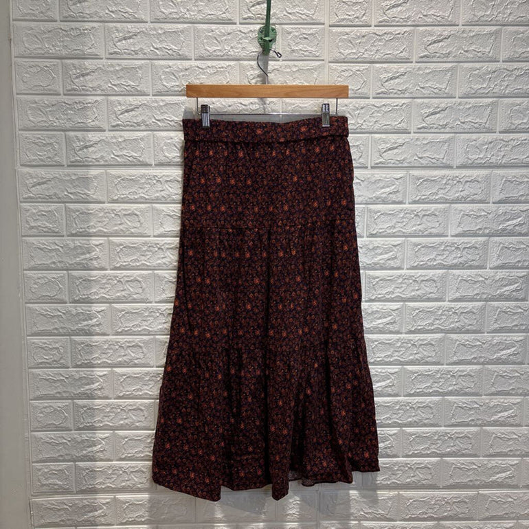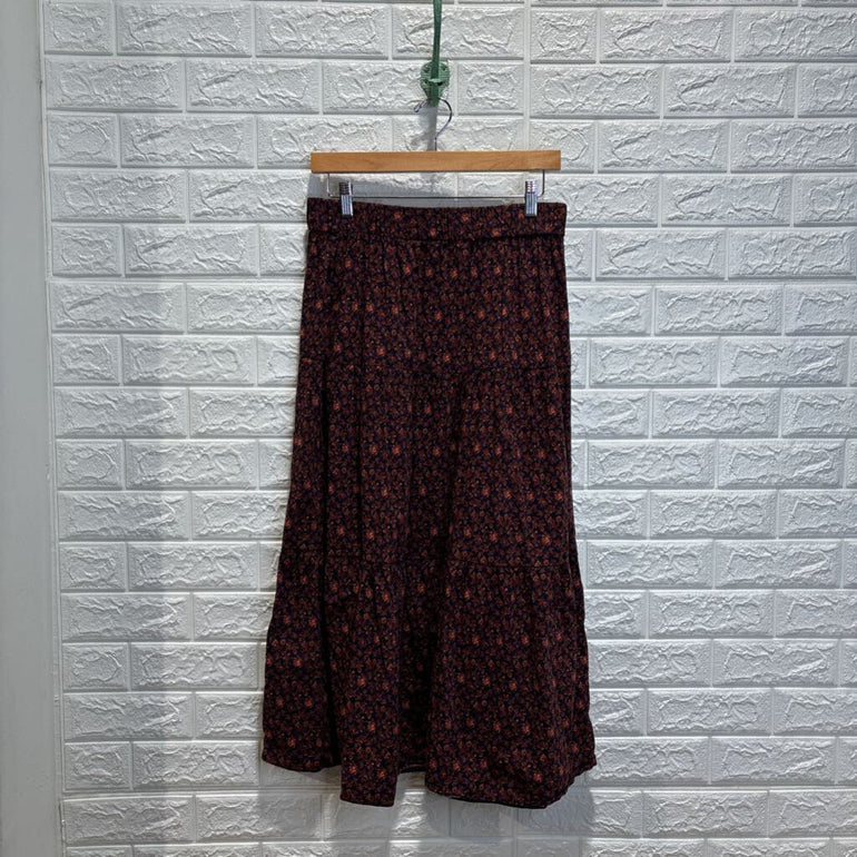 Floral Pull On Tiered Midi Skirt