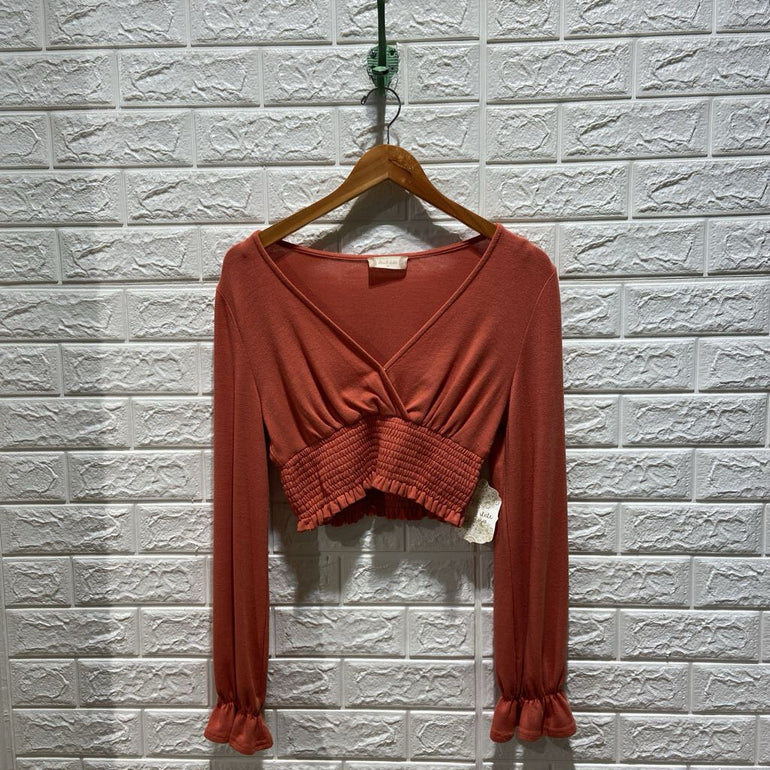 Long Sleeve Shirred Waist Crop Top NWT