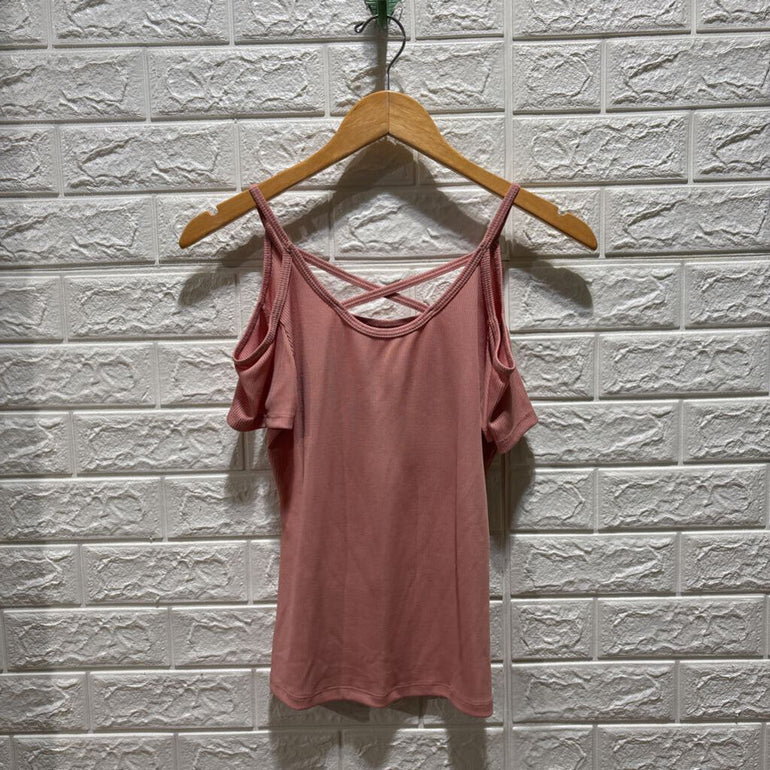 Ribbed Cold Shoulder Top