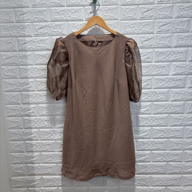 Shiny Puff Sleeve Shift Dress