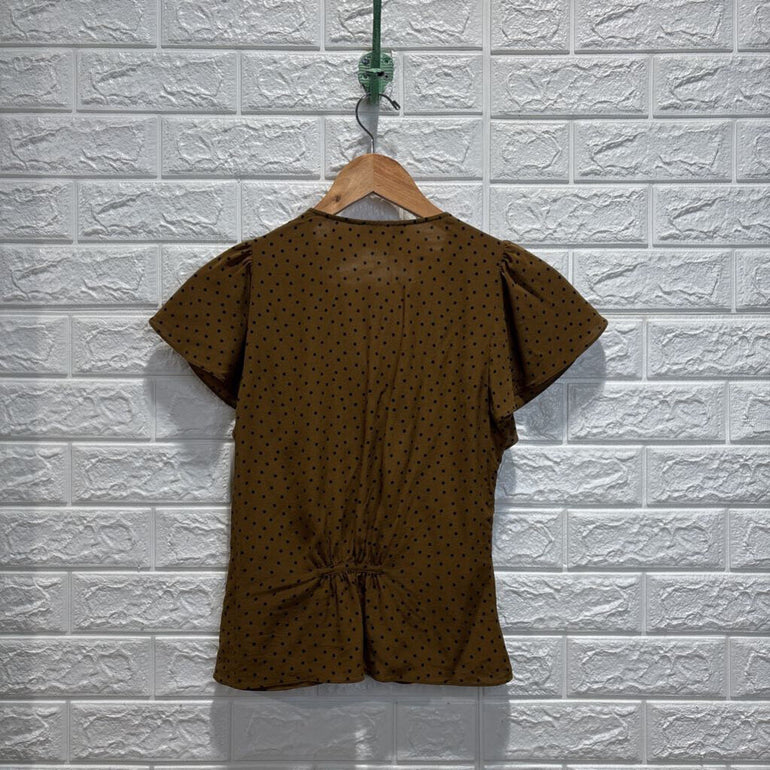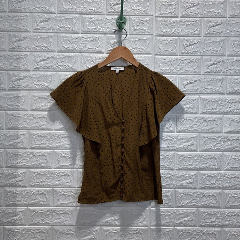 Silk Carmelina Flutter Sleeve Top in Polka Dot