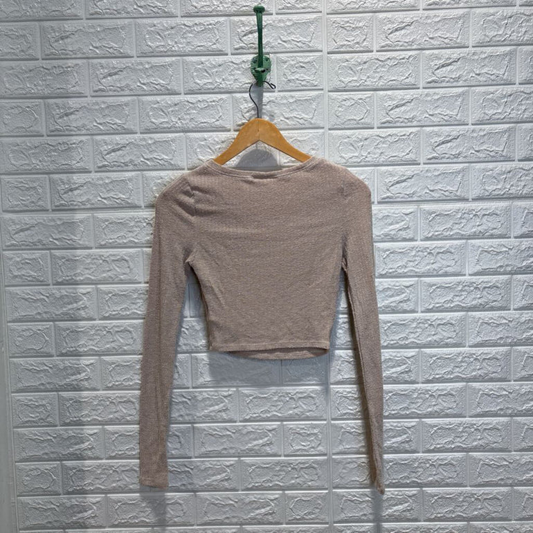 Textured Knit Long Sleeve Crop Top