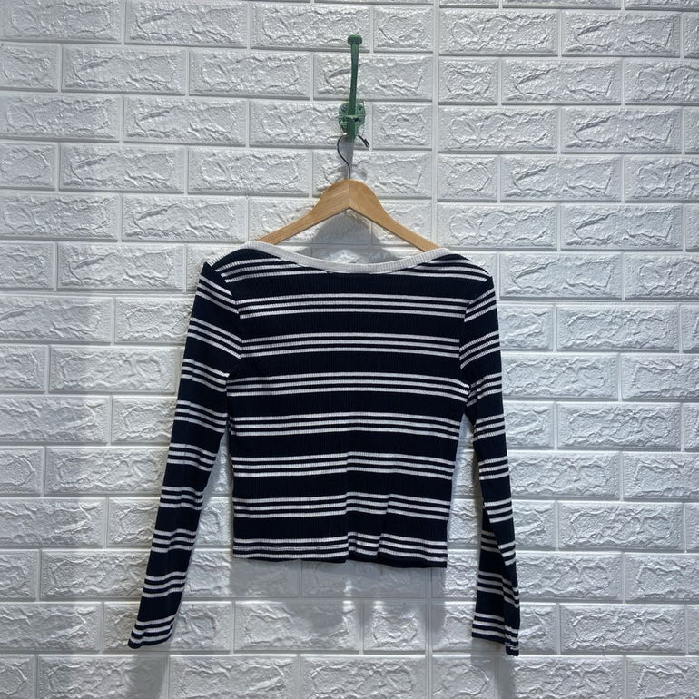 Wide Neck Ribbed Stripe Top