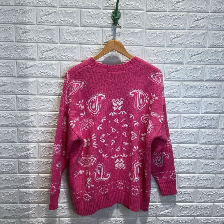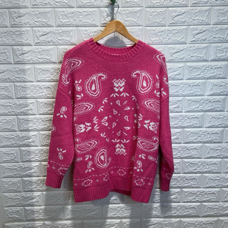 Y2K Oversized Paisley Pattern Knit Sweater