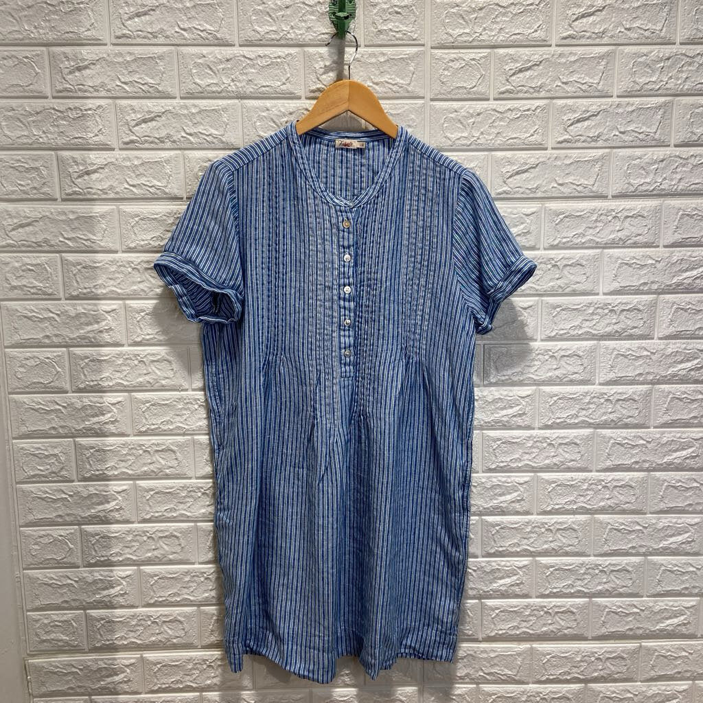 Striped Linen Half Button Shirt Dress