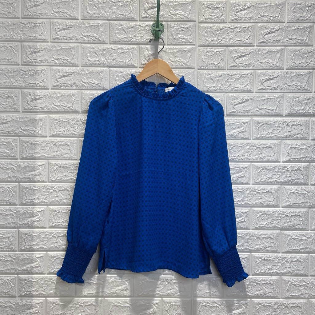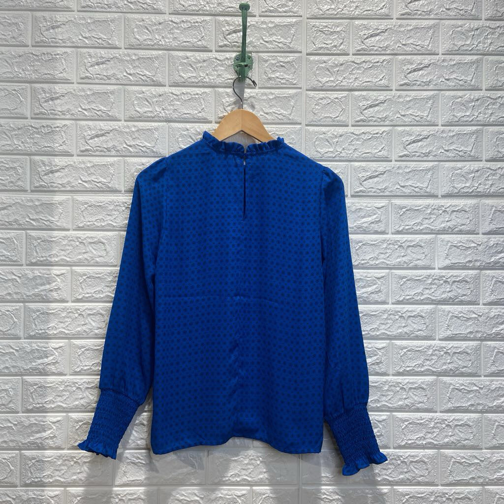 Patterned Ruffle Neck Blouse