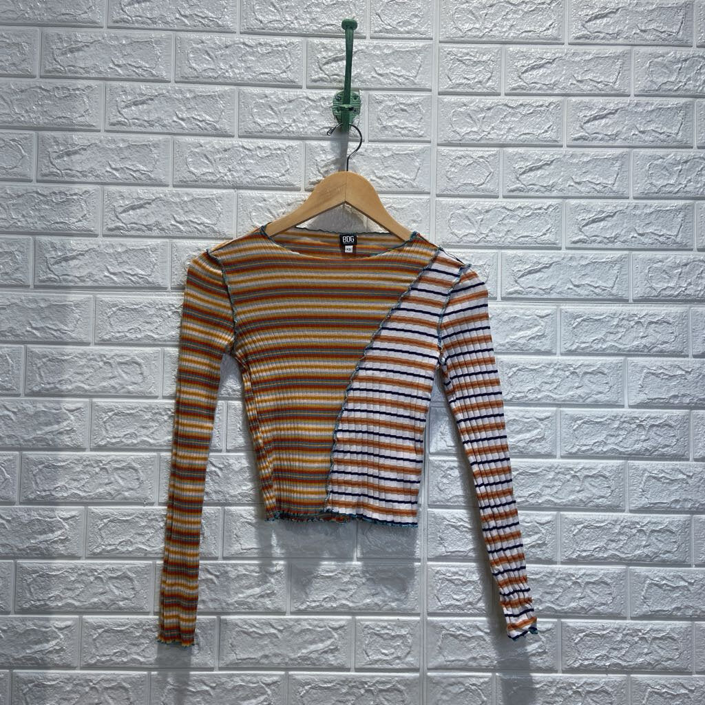 Mixed Ribbed Raw Edge Stripe Top