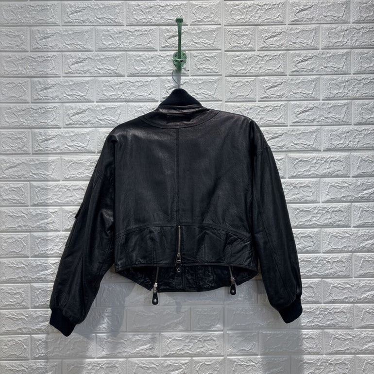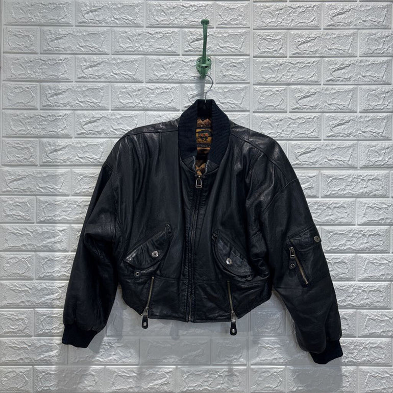 Vintage Cropped Leather Bomber Jacket *as is*