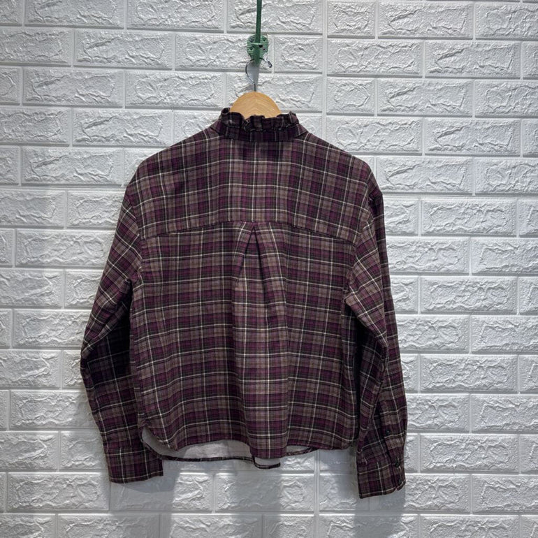 Plaid Ruffle Collar Shirt