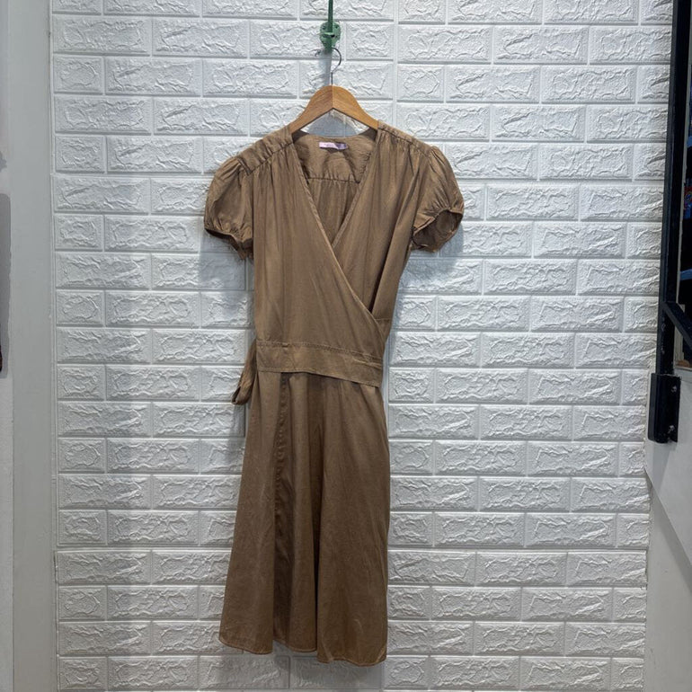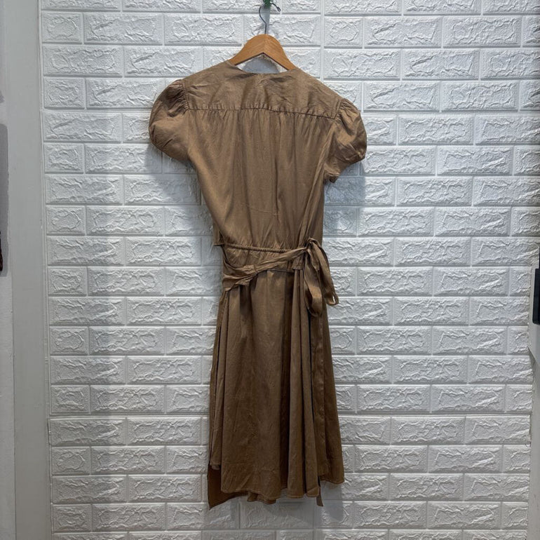 Raw Silk Short Sleeve Wrap Dress
