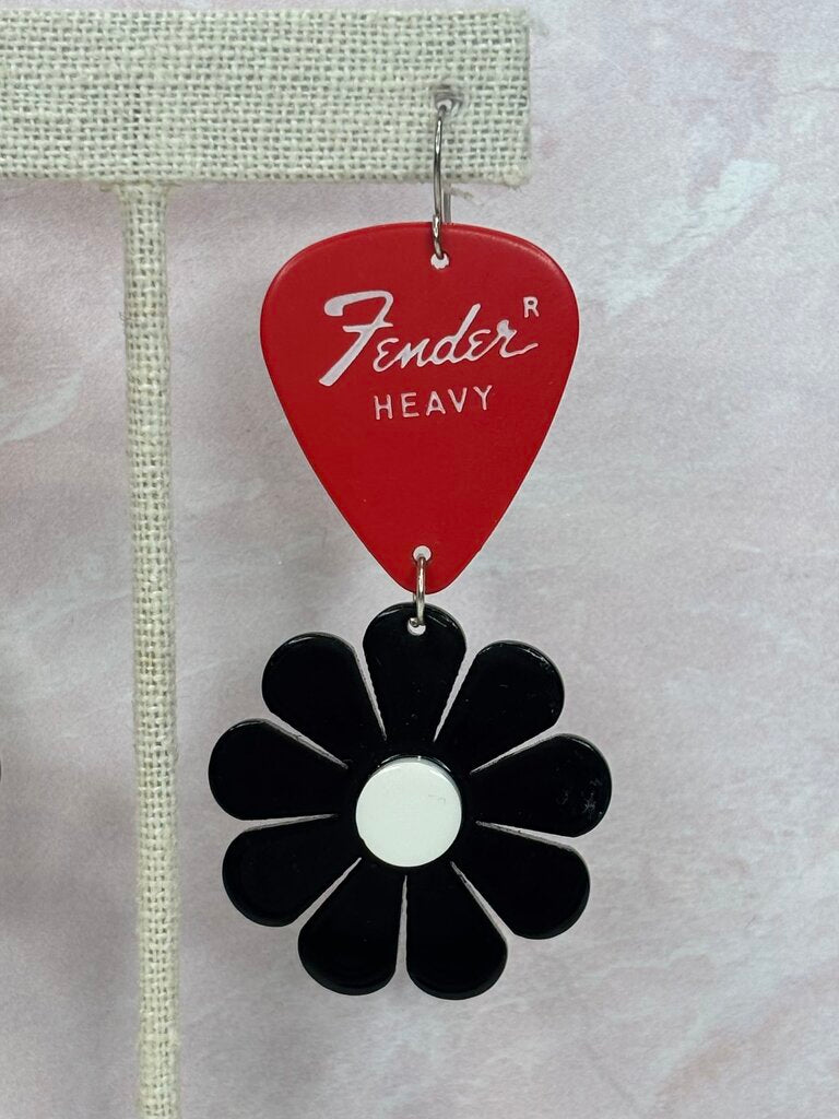 Made with hypoallergenic stainless steel gold plated hooks and guitar picks.