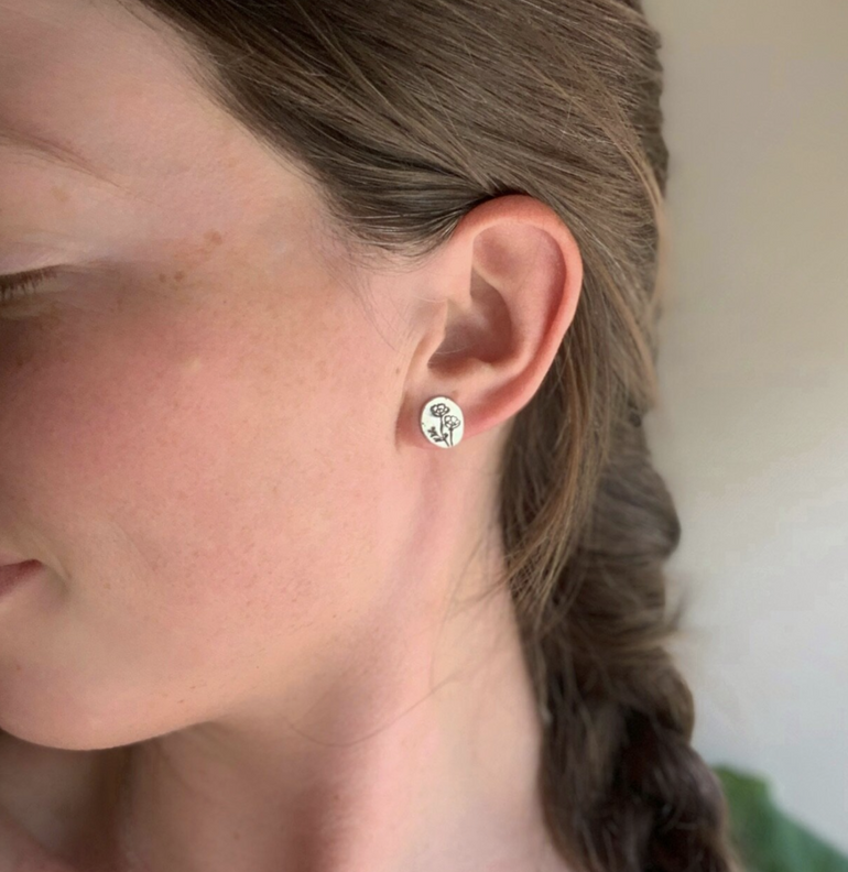 Silver Poppy Studs
