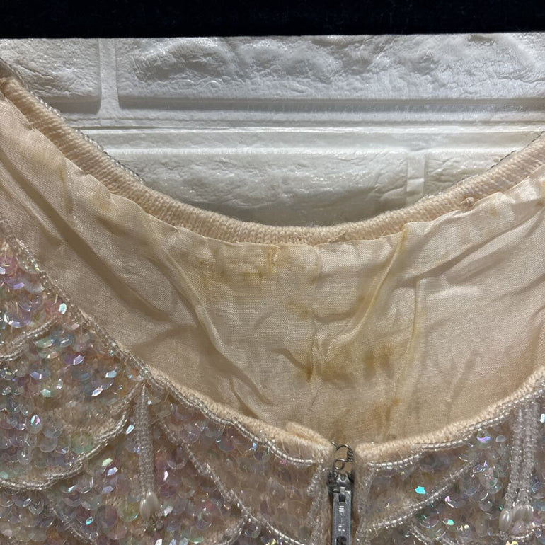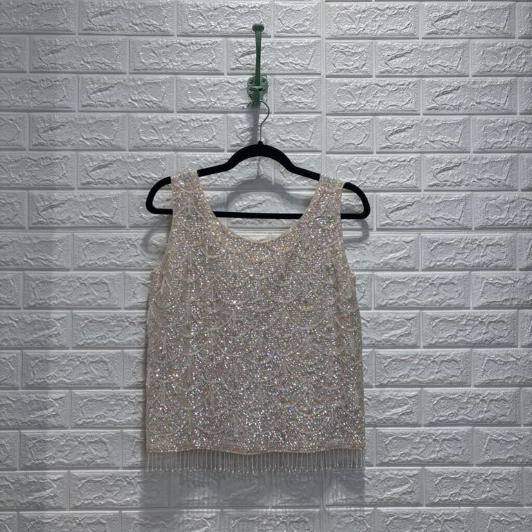 Vintage 60s 70s Sequin Hand Beaded Sleeveless Wool Top *as is*