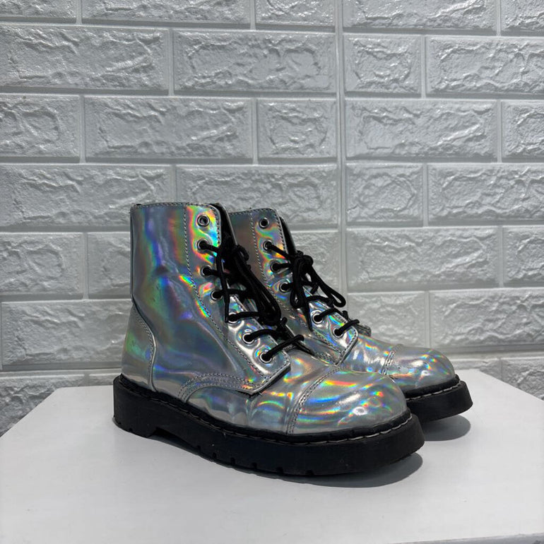 Y2K Holographic Lace Up Boots *as is*