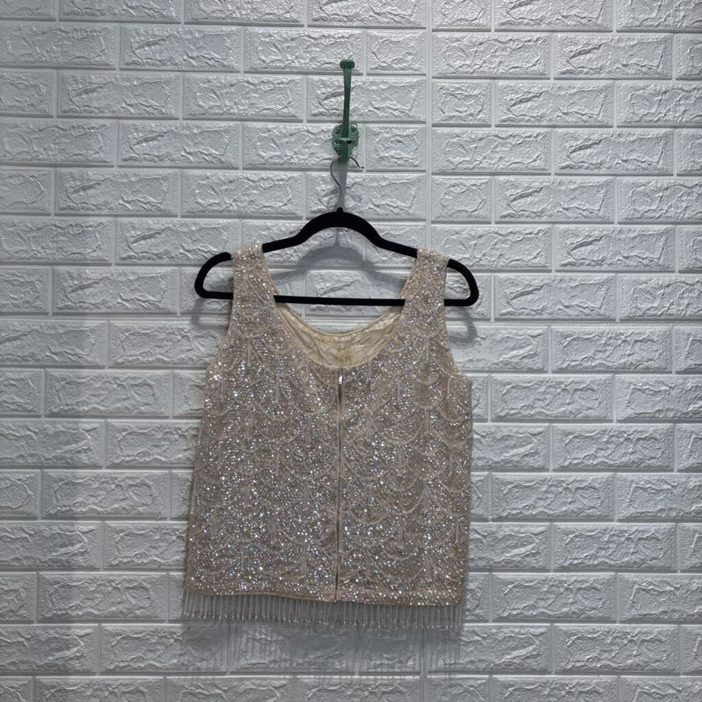 Vintage 60s 70s Sequin Hand Beaded Sleeveless Wool Top *as is*
