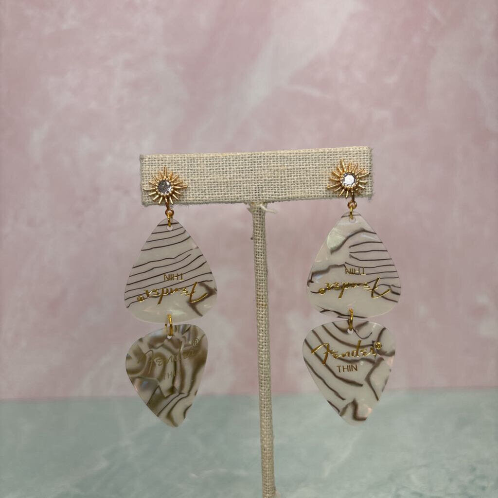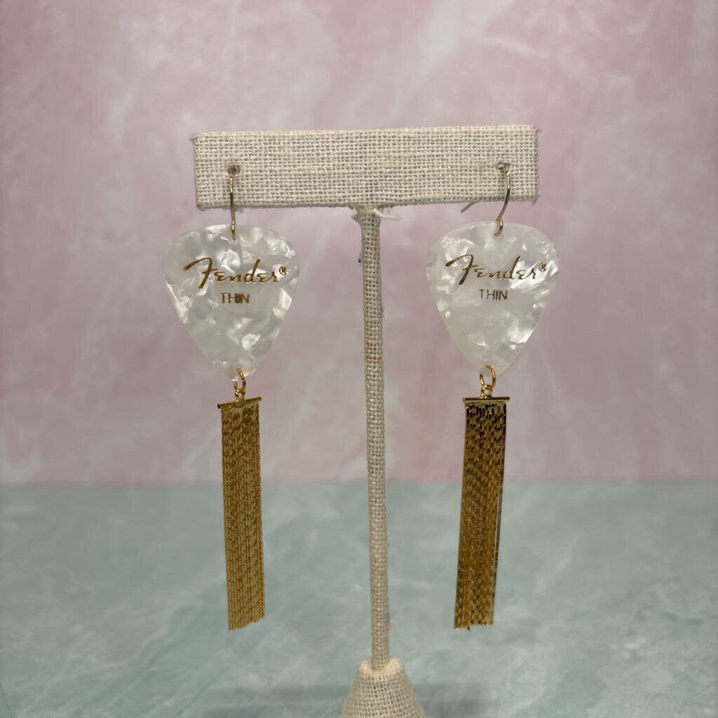 White Pick & Fringe Earrings