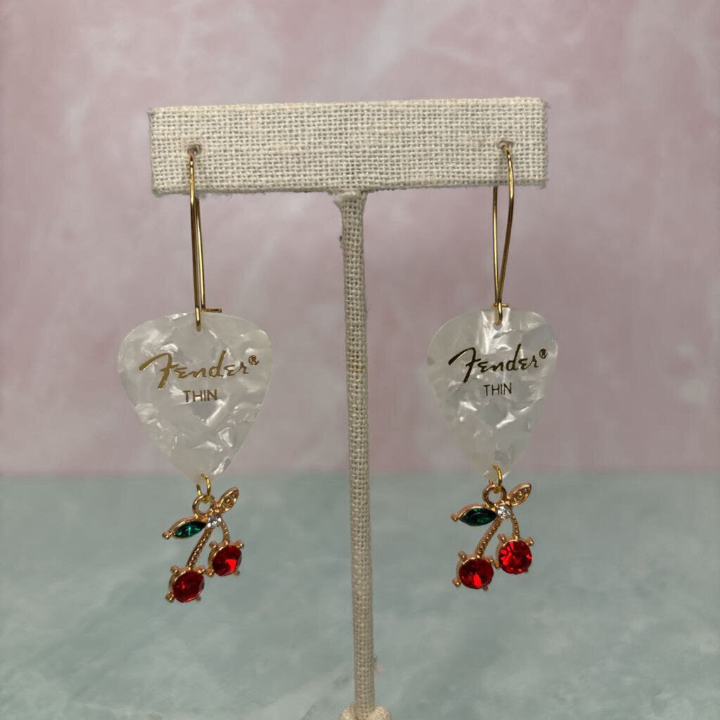 White Pick & Tart Cherry Earrings