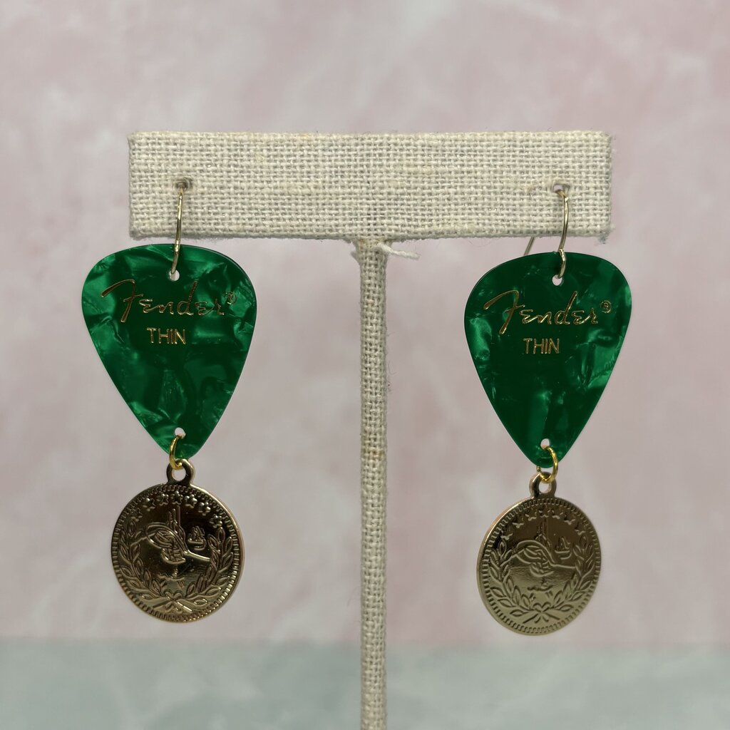 Green Pick & Coin Earrings
