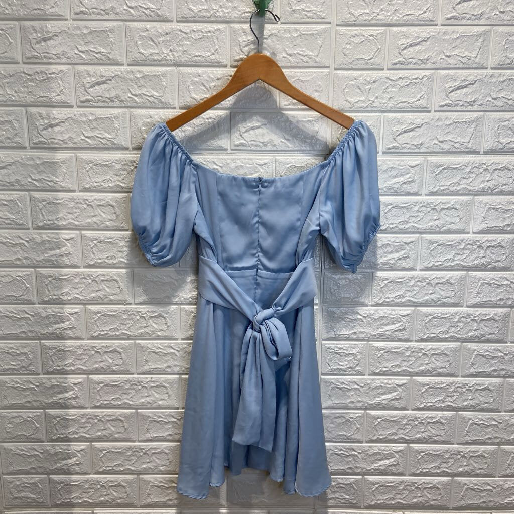 Puff Sleeve Bow Waist Dress