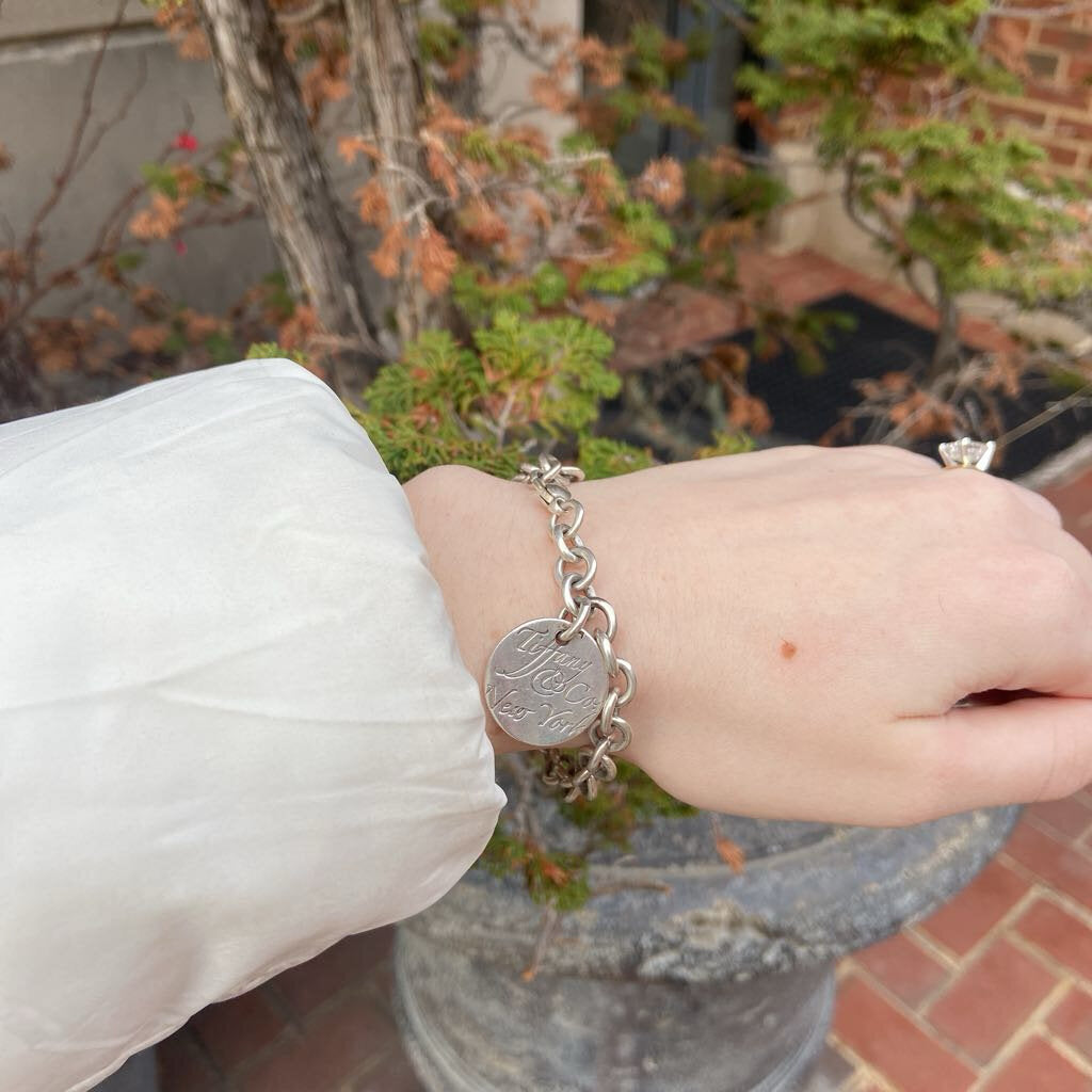 Vintage Sterling Silver Circle Tag Chain Bracelet