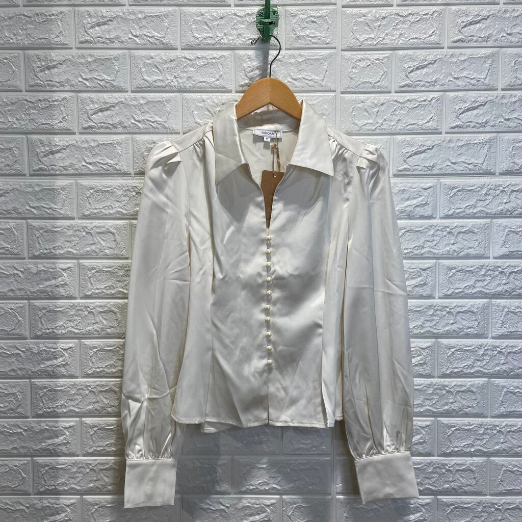 The Solid Collared Puff Sleeve Satin Blouse NWT