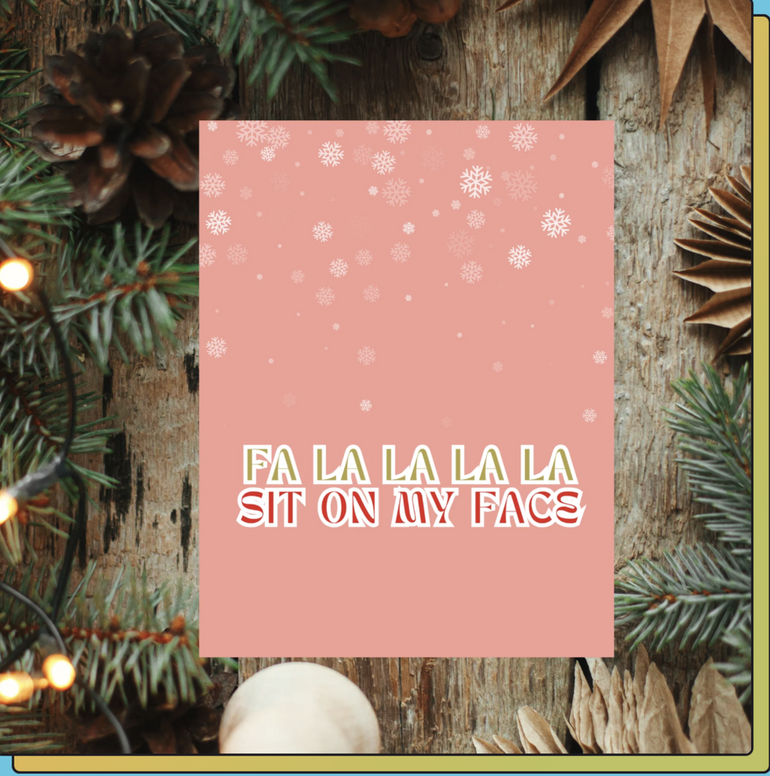 Blend the blush of a winter sunset with a risqué rendezvous and what do you get? A card that marries rosy romance with racy allure. Let the snowflakes drift down, and let the festive fantasies take flight.