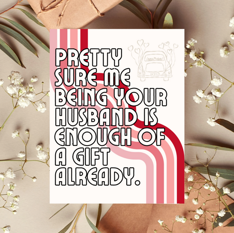 Pretty sure being married to him is more than enough, but here’s the proof in card form. Snarky, funny, and just the right amount of cocky—this is the perfect anniversary or Valentine’s Day card from a husband who knows he’s the prize.