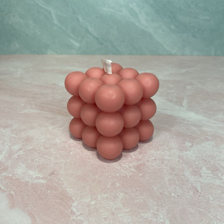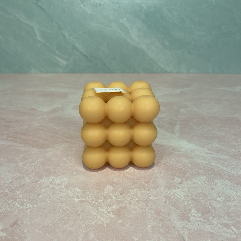A handmade bubble cube candle with a mild scent! Measures 2.36" x 2.36". Since these candles are handmade, each is unique and has some color variation!