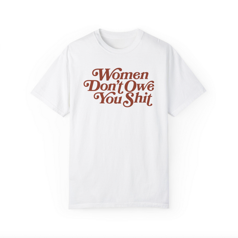 The perfect t-shirt to show off your proud feminism, and that belief that women don't owe the world of men anything.