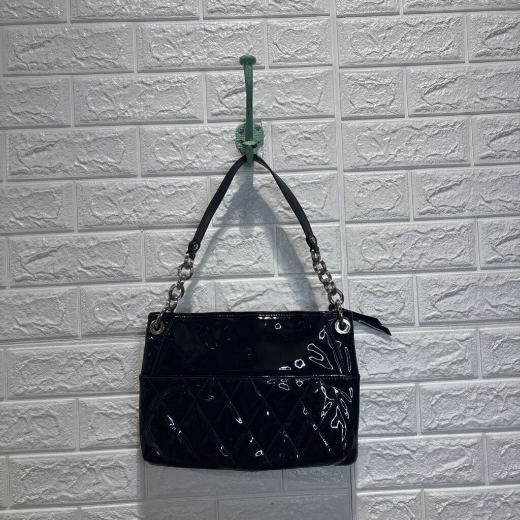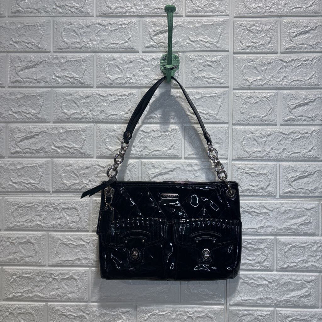 Poppy Liquid Glass Quilted Black Patent Leather Shoulder Bag