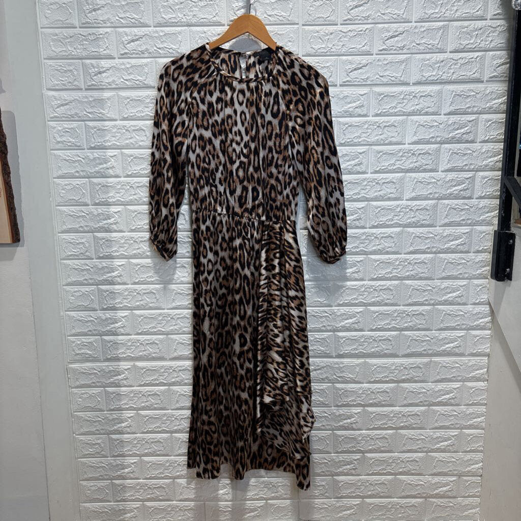 Silk Leopard Print Elbow Sleeve Dress