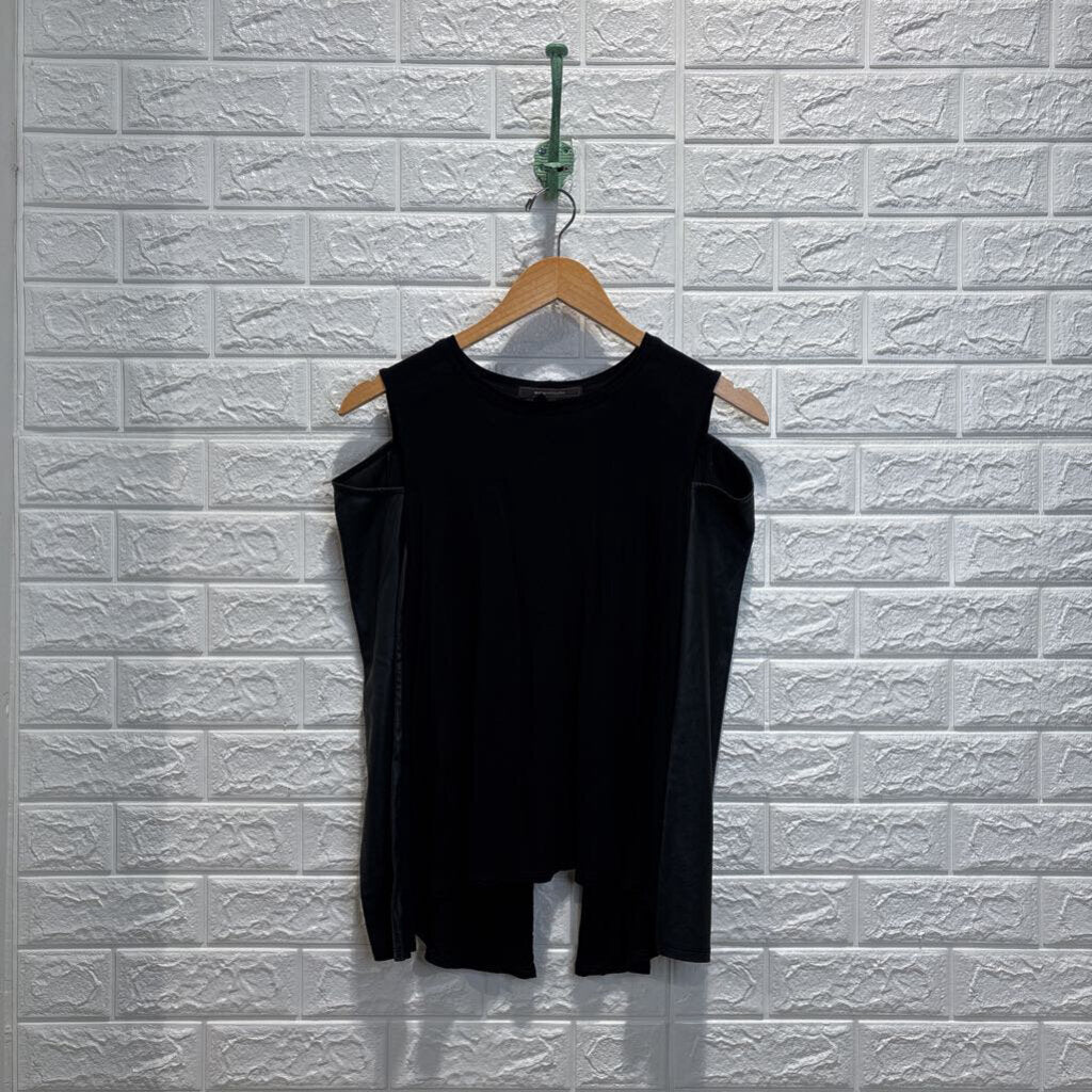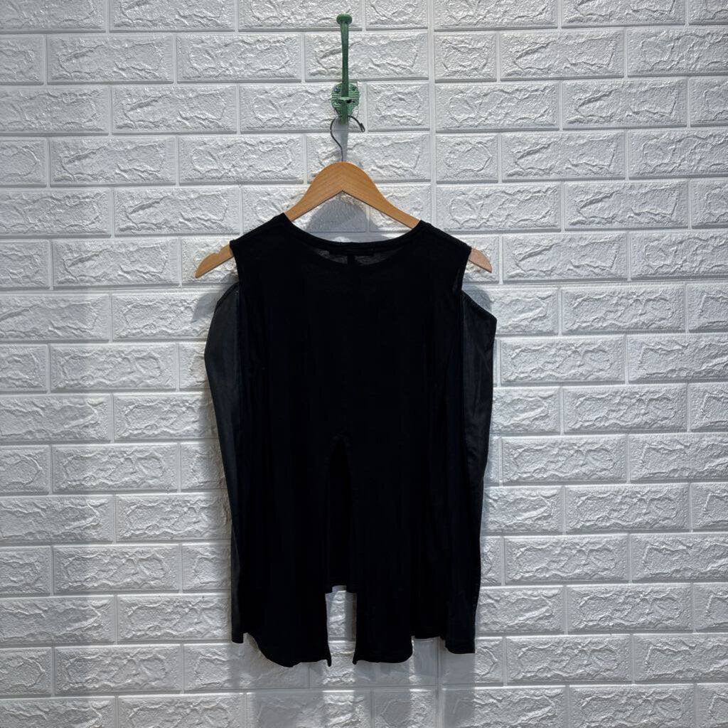Pleather Long Sleeve Split Shoulder Top