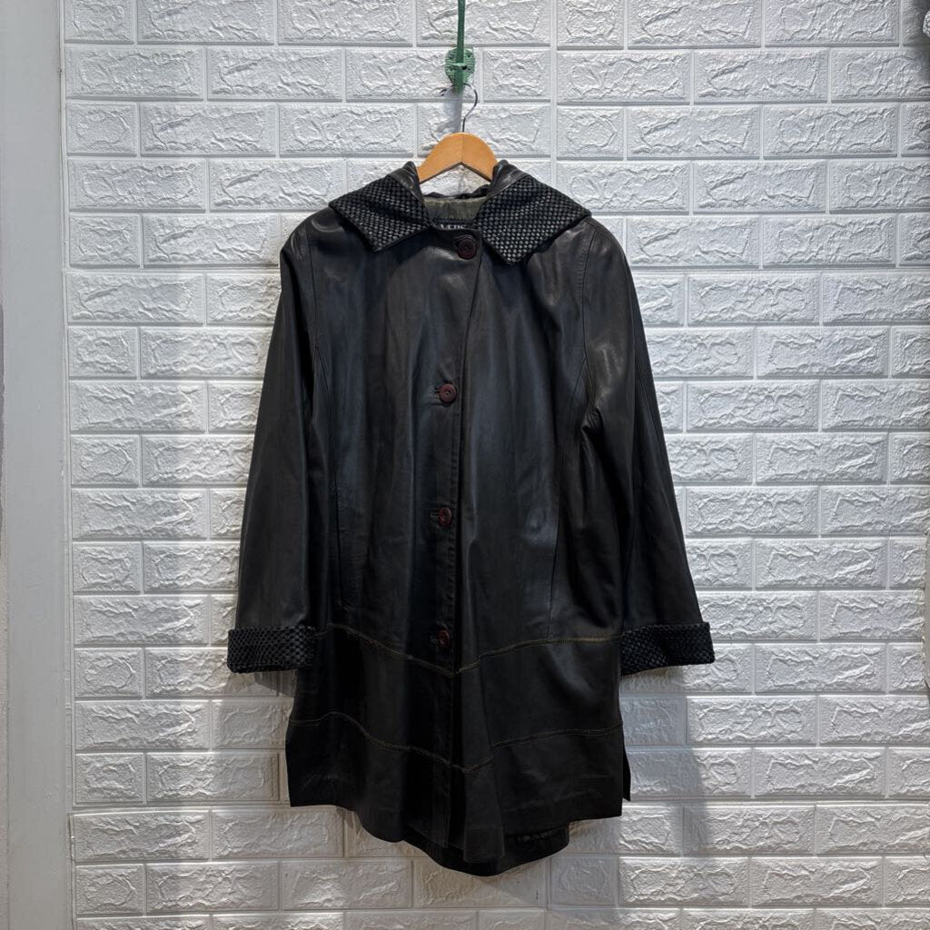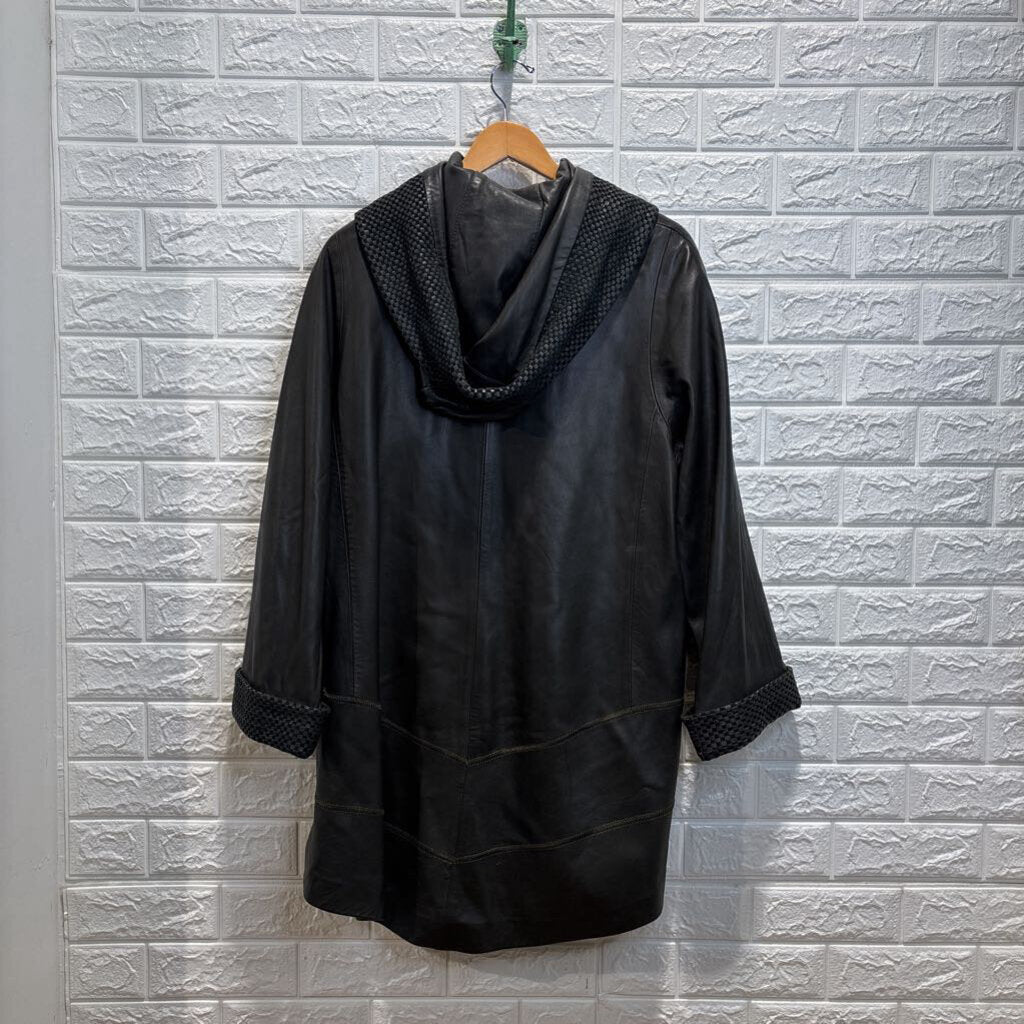 Vintage Longline Hooded Leather Jacket *as is*