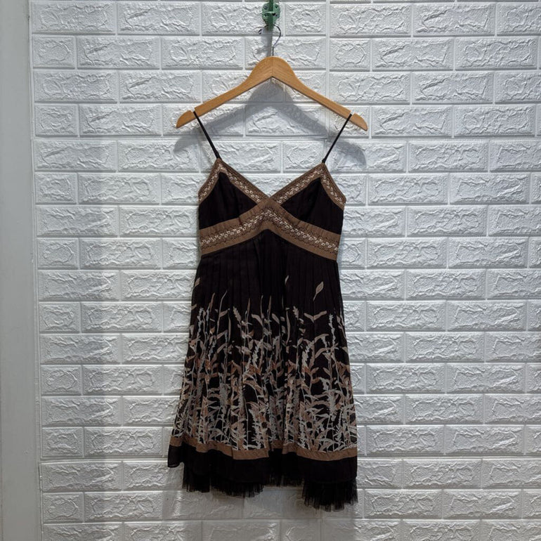 Cotton Silk Blend Sleeveless Pleated Dress