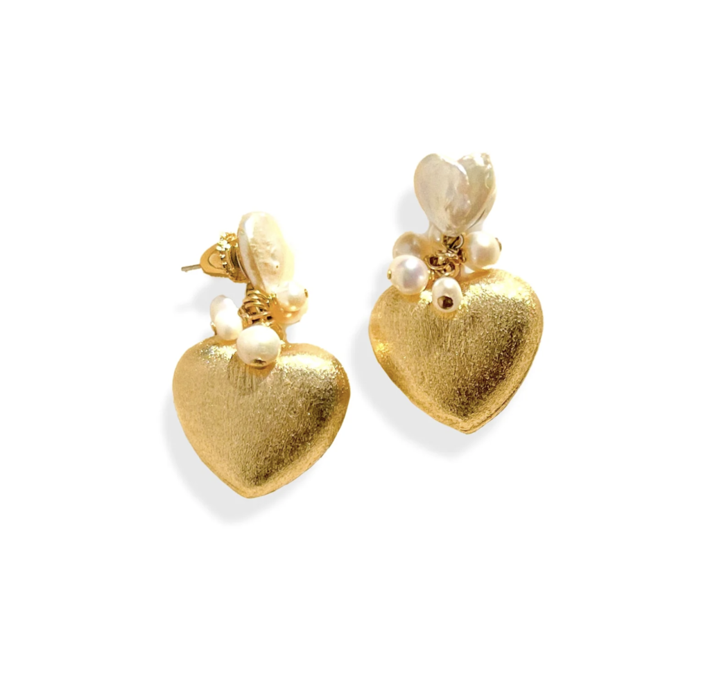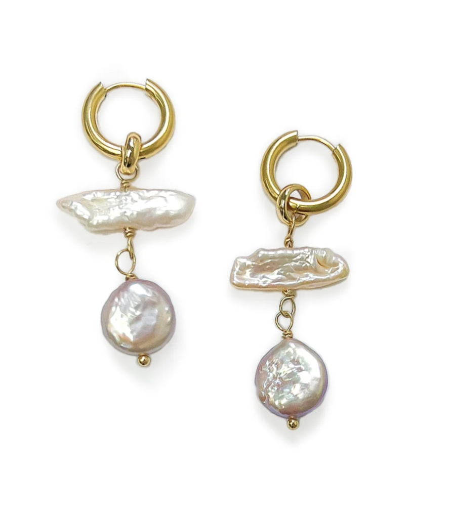 High quality brass, either plated in 12Kt gold or sterling silver, hypoallergenic with sterling silver or stainless steel posts. All semi precious stones, freshwater pearl & vintage mother of pearl.