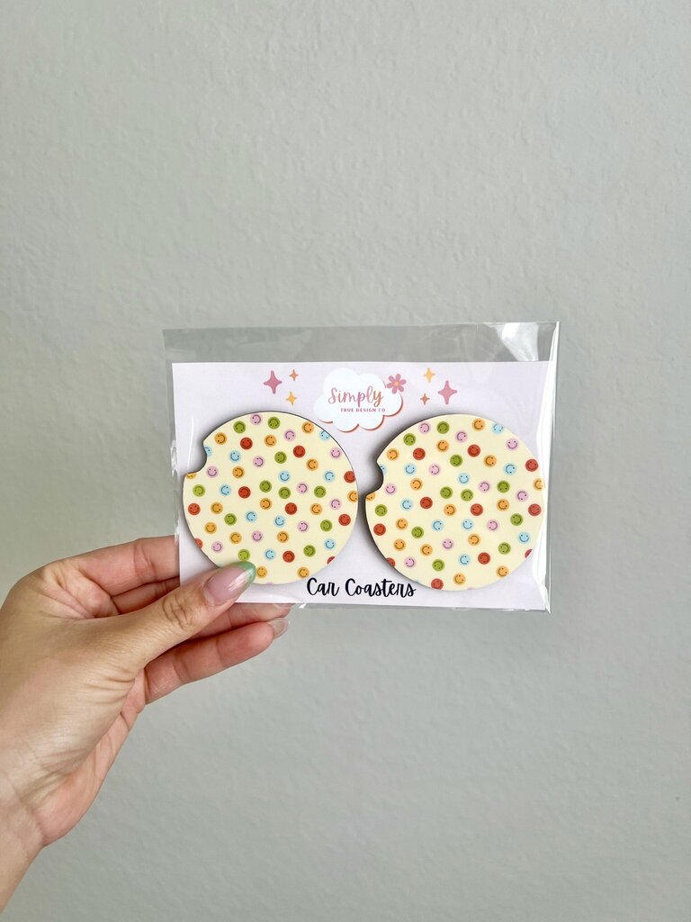 Colorful Smiley Car Coasters