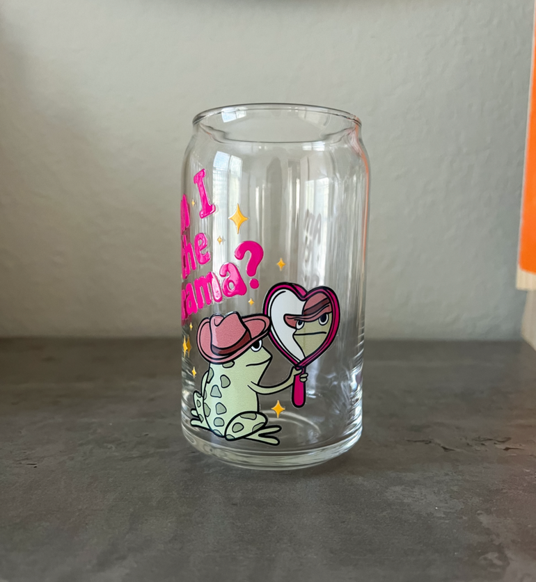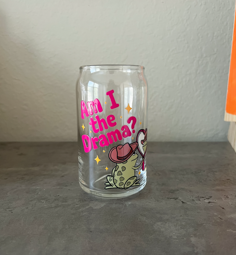 These 16oz glass cups are perfect to enjoy your favorite drinks and make the perfect gifts. Suitable for hot and cold drinks. The design is made out of durable permanent vinyl.