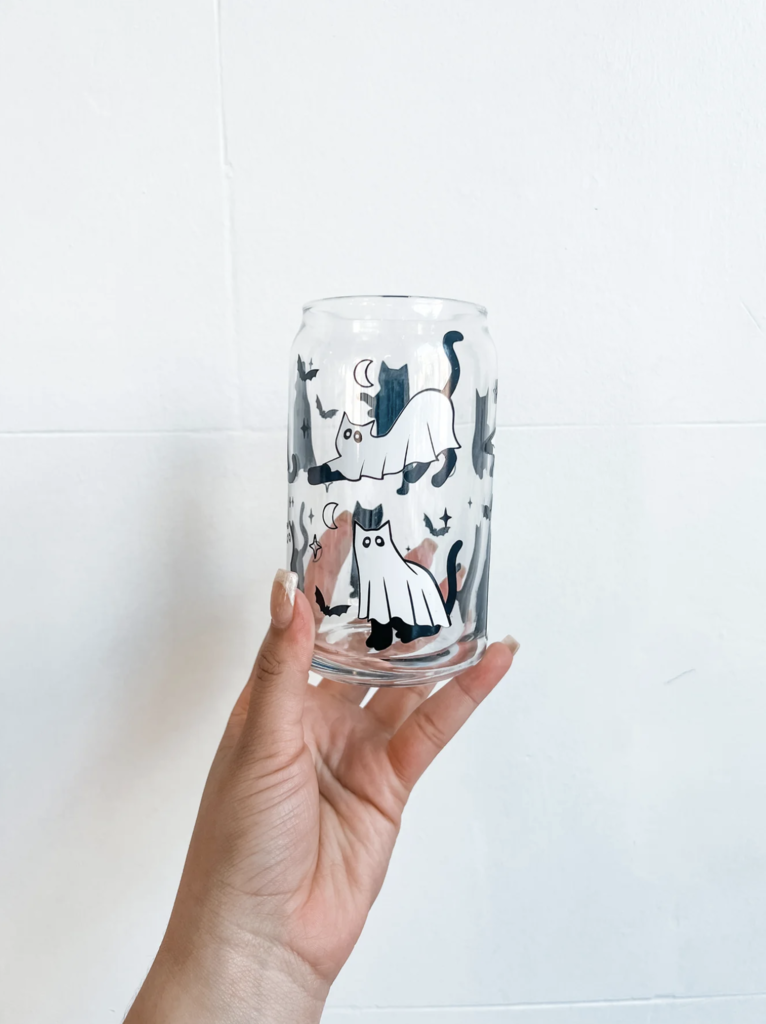 Ghost Cat Glass Cup