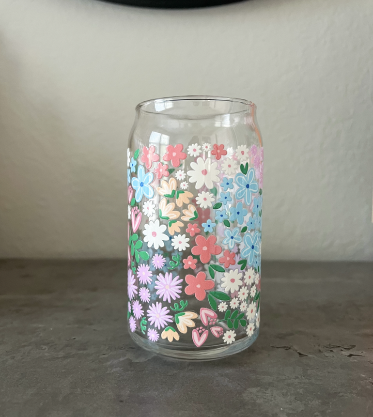 These 16oz glass cups are perfect to enjoy your favorite drinks and make the perfect gifts. Suitable for hot and cold drinks. The design is made out of durable permanent vinyl.