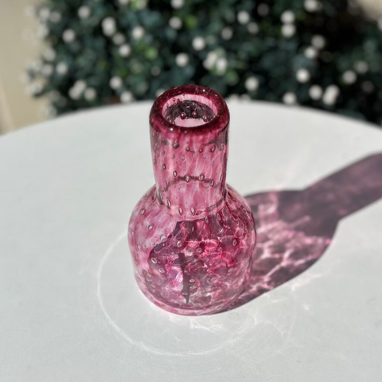 Hand blown glass vases. Each one is its own unique piece of art. As they are handmade, some variation is to be expected.